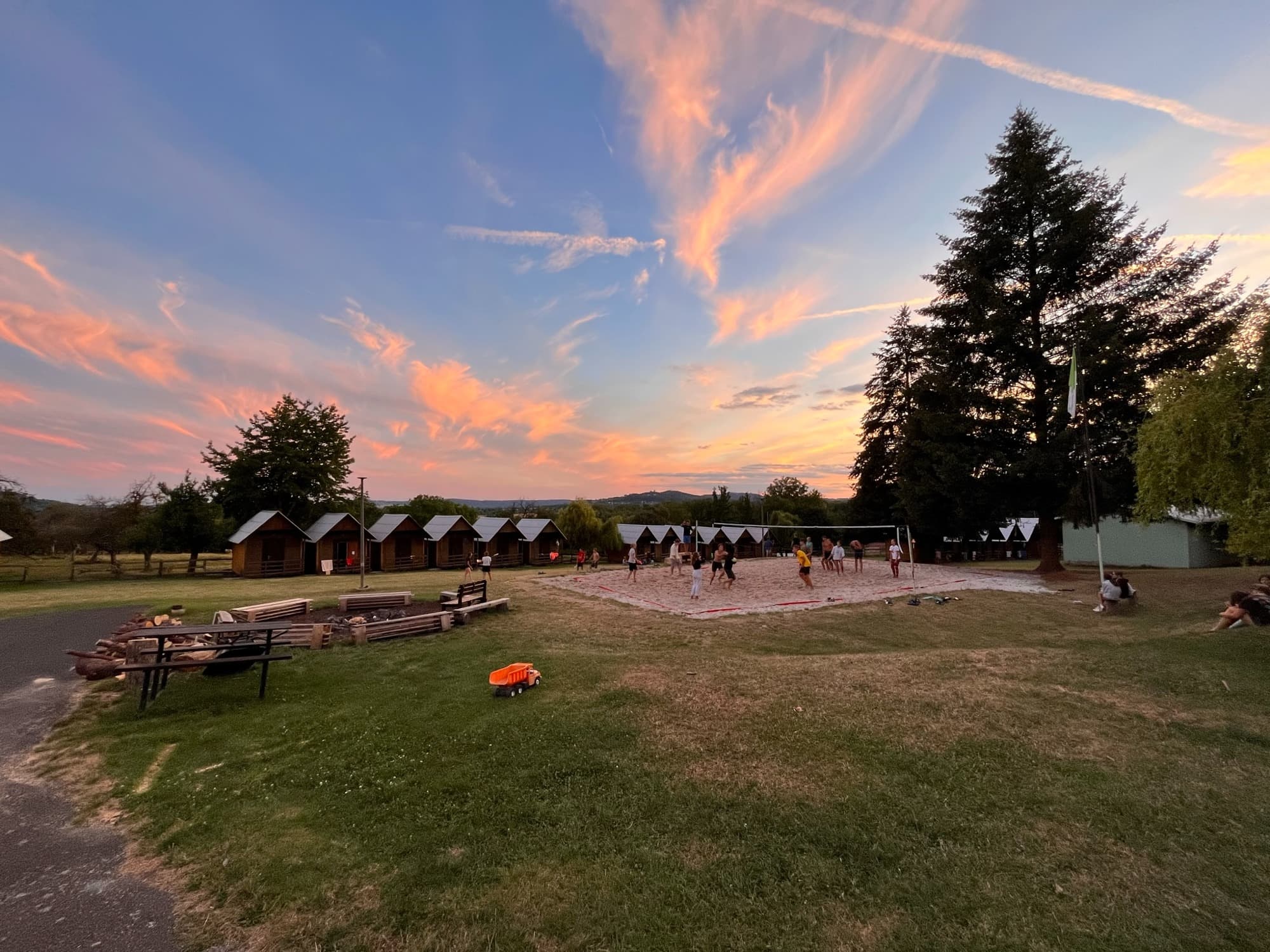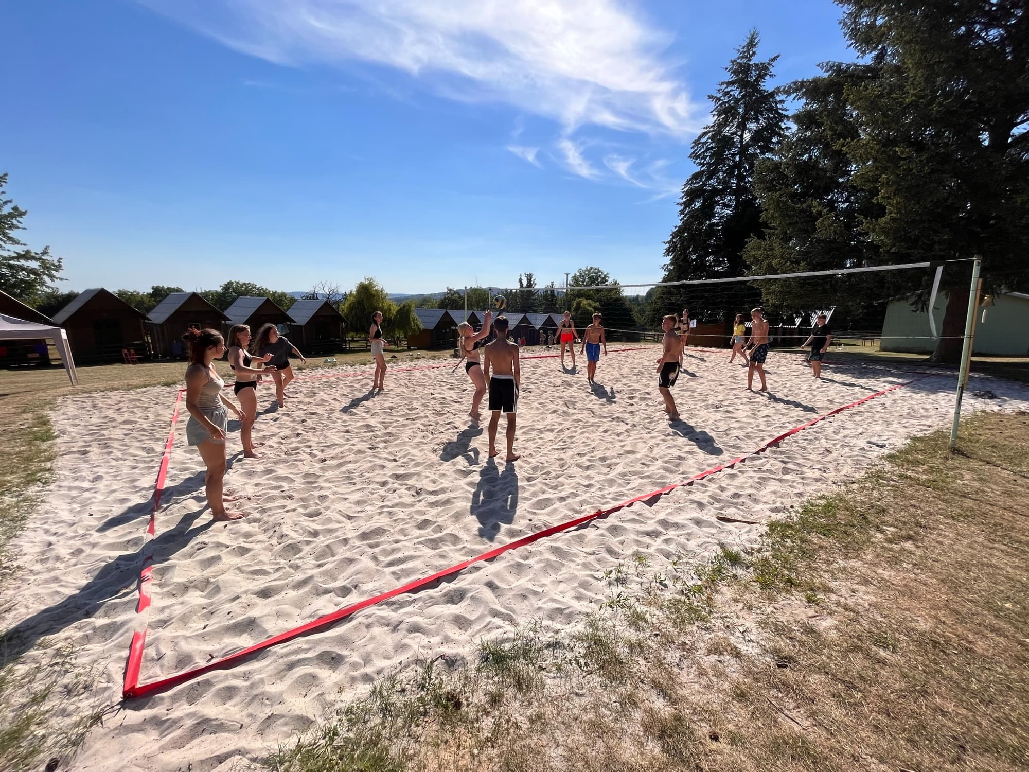 Uprostřed kempu je hřiště na volejbal. V hlavní budově, která je zděná, je velká jídelna, restaurační zařízení s kuchyní. Ubytovací kapacita – 44 chatiček, které jsou 4 lůžkové, standardně vybavené, dále dvě zděné budovy s toaletami a umývárkou. Pro chatky je sociální zařízení ve dvou buňkách a na hlavní budově.